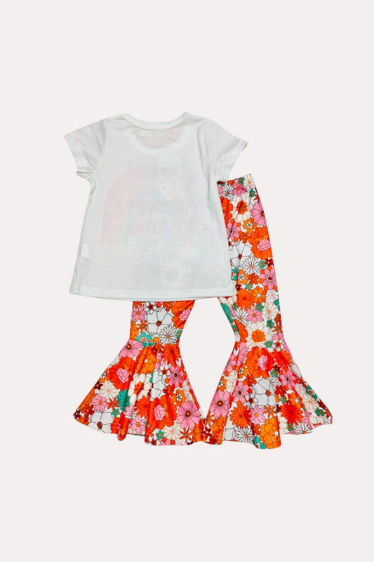 X0333-13 "Groovy Girl" top & floral bell bottom 2ps girls sets