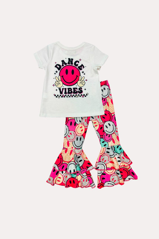 X0333-17 Smile face printed top & bell bottom girls sets
