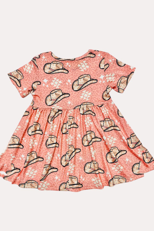 X0888-1 Pink animal print & cowboy hat short sleeve dress