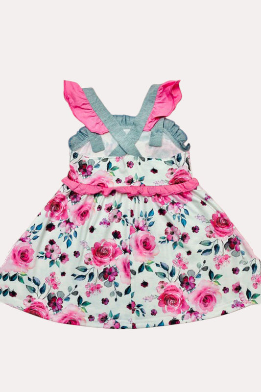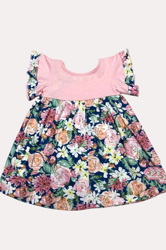 SaleX0555-15 Pink & Floral prints color block summer girls dress