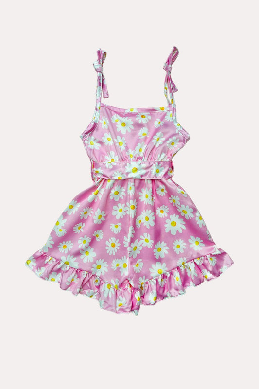 SaleD2472 Milk Silk pink floral prints sleeveless girls jumpsuit