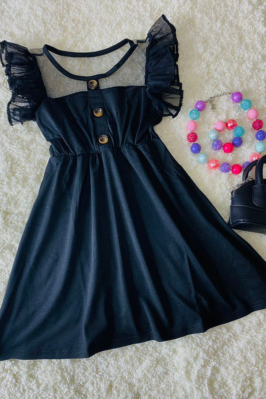 SaleBlack tulle ruffle sleeves girl dress X0888-17