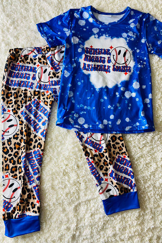 Children pajamas clothes Blue baseball & leopard printed girl set 11898MZ