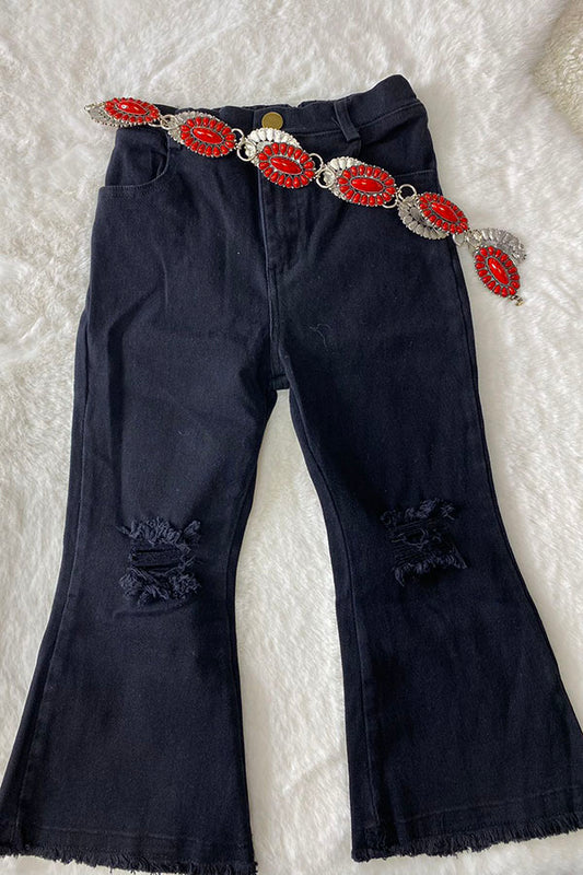 Brown sequin football embroidery top black bell bottom girls sets X0024-6