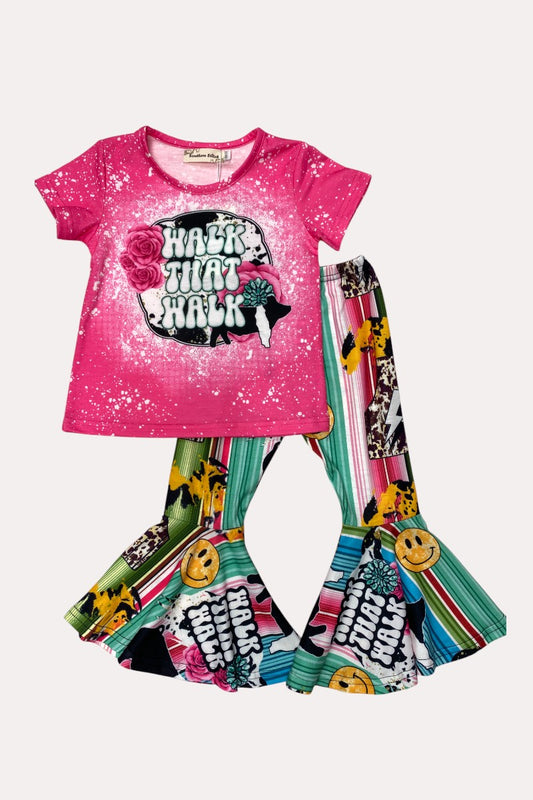 Sale"WALK THAT WALK" multicolor 2pc short sleeve girls set X0777-12