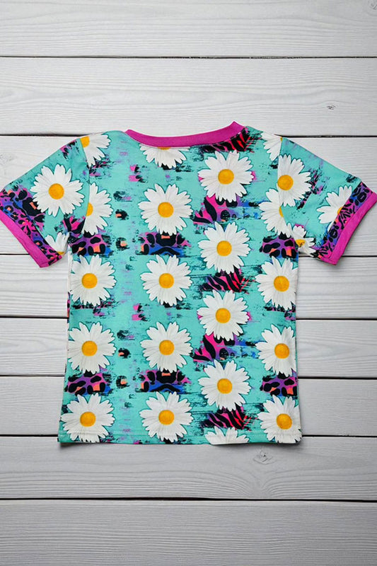 Western daisy & animal printed short sleeve girls t-shirt D10821-1