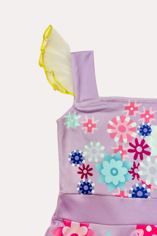 SaleLC0022 Cute light purple floral sleeveless w/matching crossover purse dress