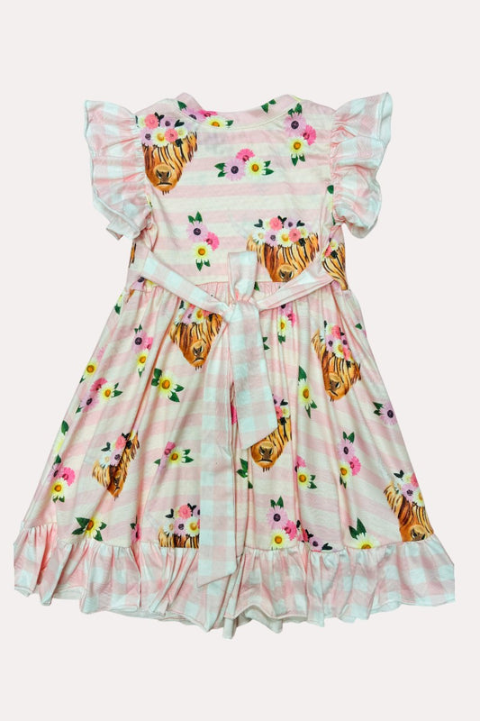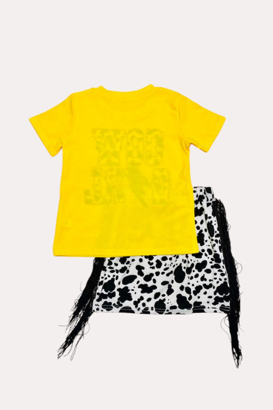 SaleD2549 Yellow & cow print "COWGIRL" fringe skirt 2pc girls set