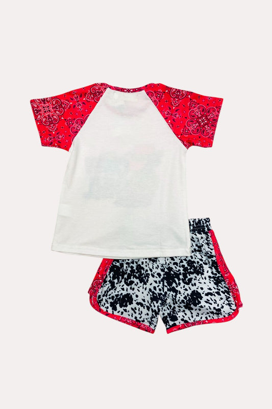 X0777-36 "COWGIRL" hot pink paisley & cow print 2pc girls set