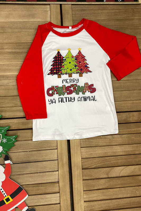 SaleDLH2687 Kids "MERRY CHRISTMAS YA FILTHY ANIMAL" Raglan sleeve t-shirt