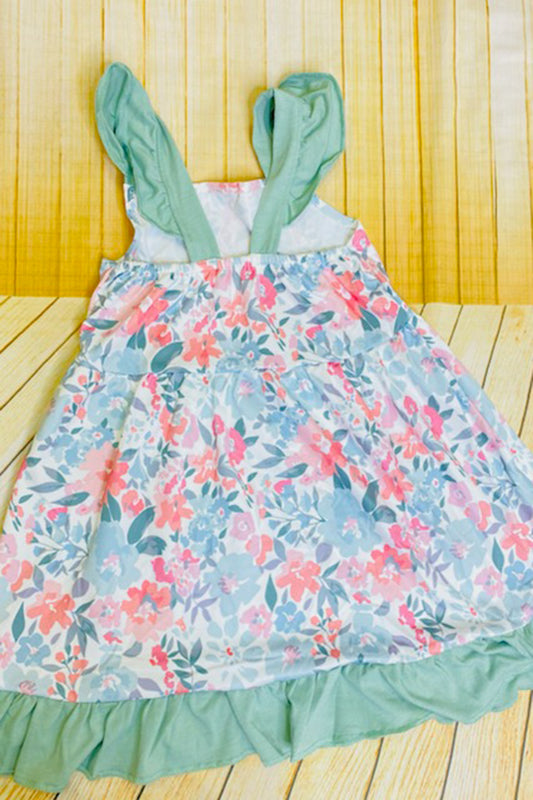 Sale1164WY Pink & mint floral ruffle sleeveless girls
