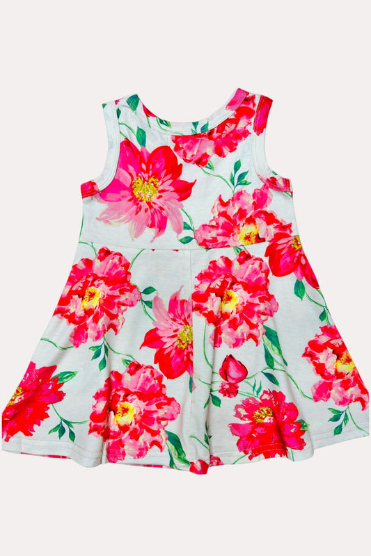 SaleX0888-25 Hot pink floral print sleeveless girls dress
