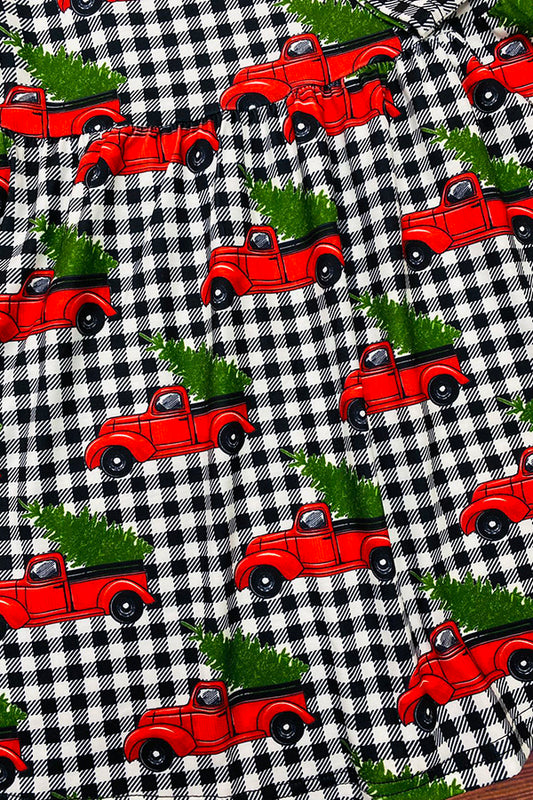 Red truck & tree black/white plaid long sleeve dress XCH0017-8H