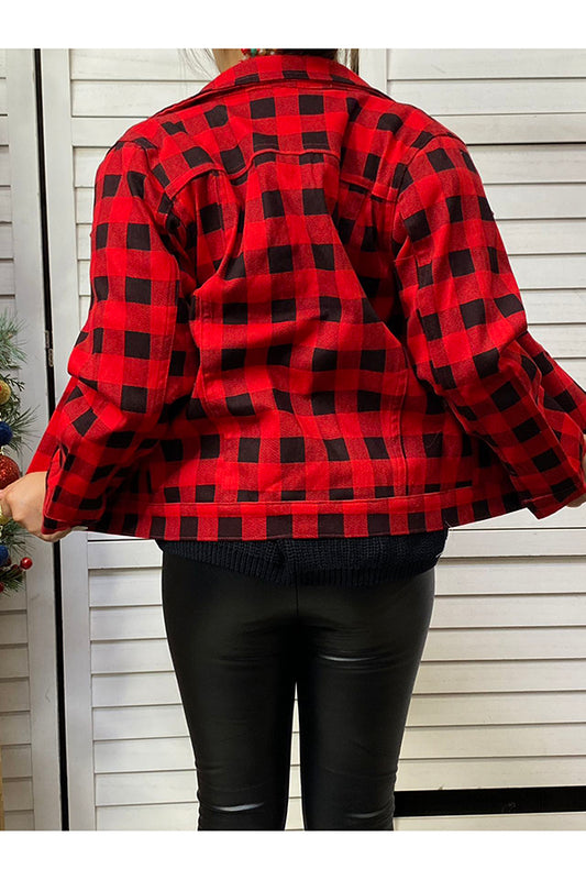 Kids Red black plaid long sleeve denim jacket DLH2584 for 6-11years