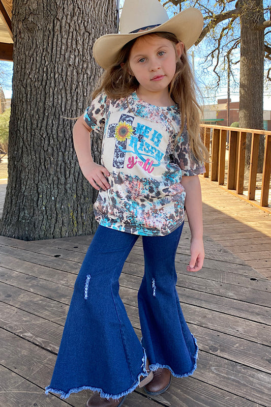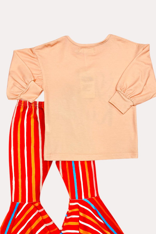 X0018-14 "Be Kind" heart print top & striped bell bottom 2pc girls sets
