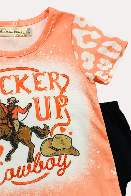 X0018-19 "PUCKER UP Cowboy" s top & black pant 2pc western girls sets
