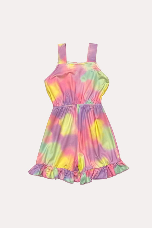 DLH2473 Summer multicolor tie dye ruffle one piece girls jumpsuit