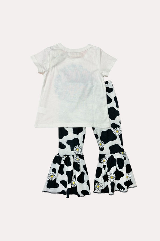 X0777-33 "COW/GIRL" daisies & cow print 2pc girls sets