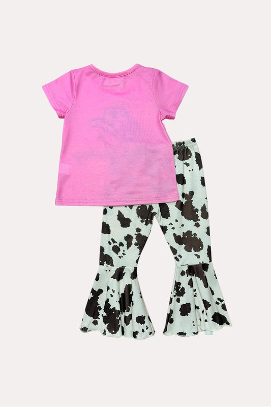 X0666-14 "HEY COWBOY" pink & cowhide western 2pc girls set