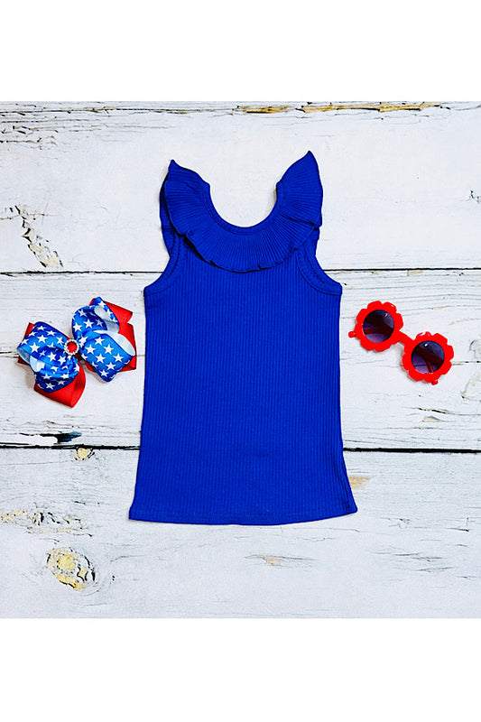 Royal blue ruffle neck w/crisscross back sleeveless top DLH2449 A7S9