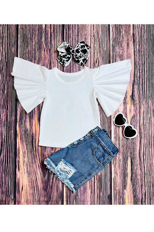 White ruffle short sleeve girls top DLH2466
