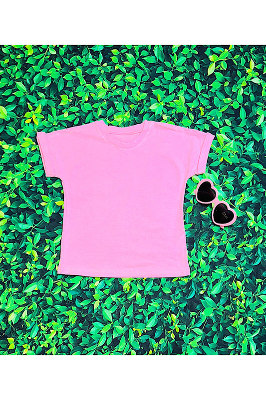 Pink short folded sleeve top DLH2501 A7S9