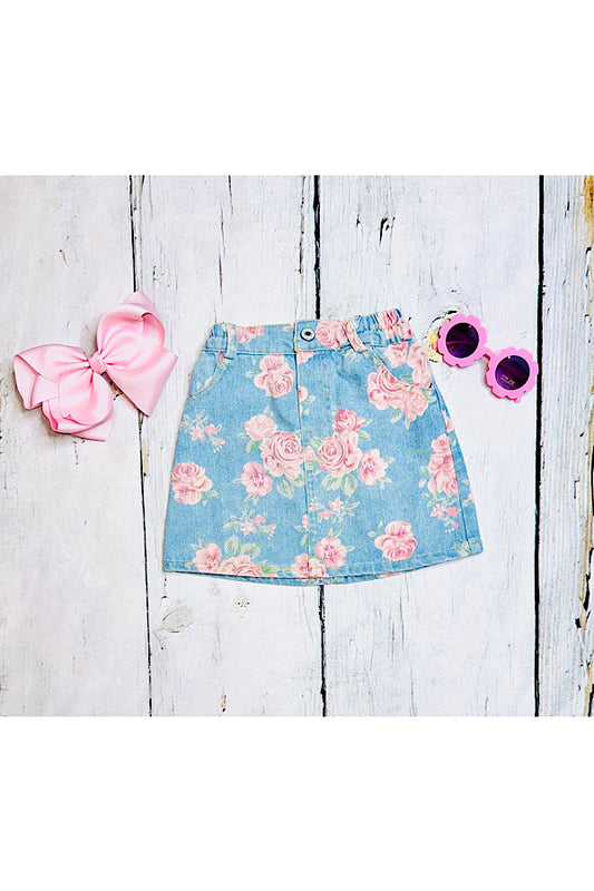 Pink roses denim girls skirt 230134M