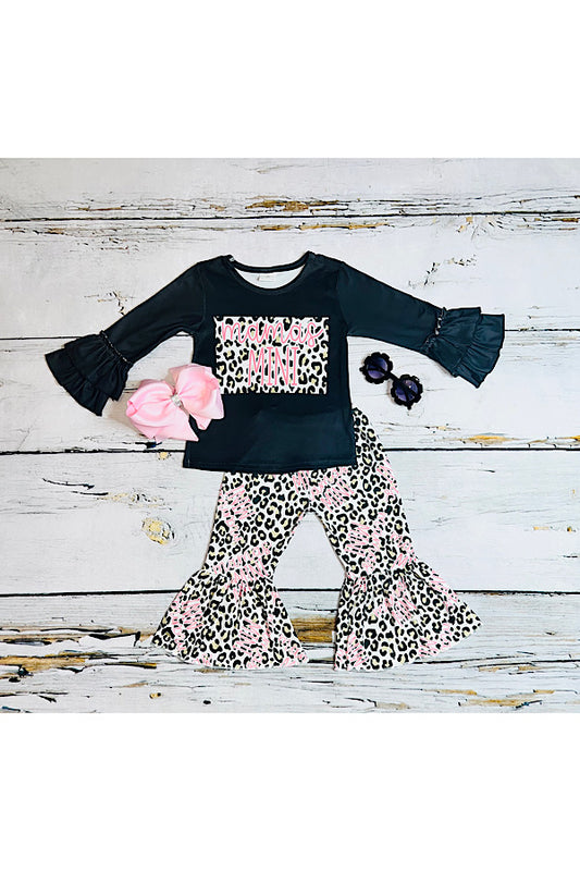 Long sleeve "mamas MINI" print & bell-bottom pant 2pcs girls boutique clothing sets