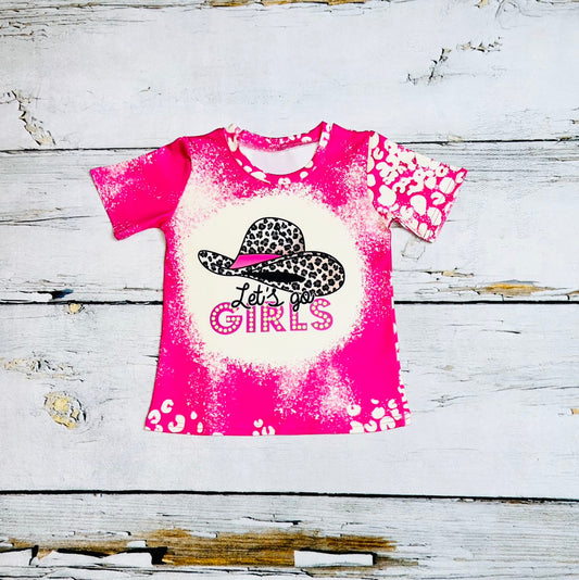 "LET'S GO GIRLS" bleached hot pink short sleeve top