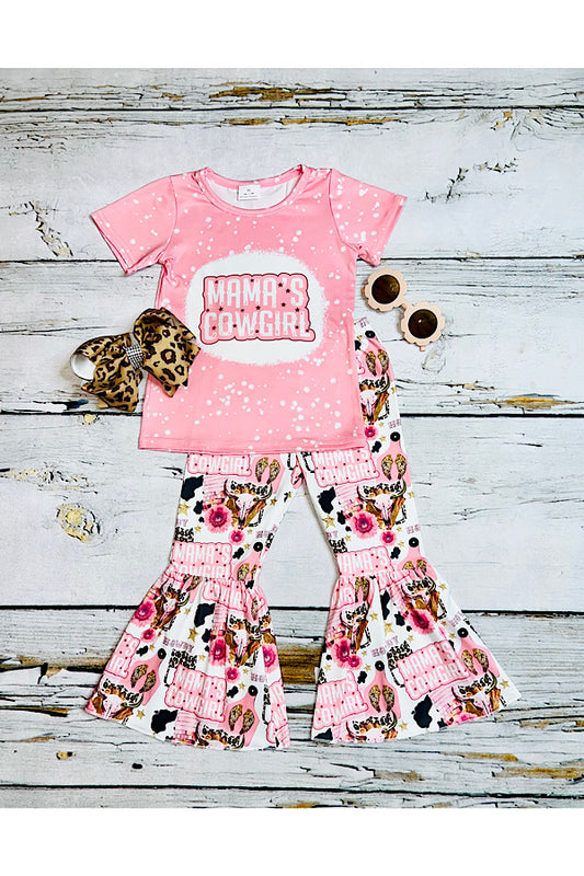 "MAMA'S COWGIRL" light pink 2pc short sleeve set