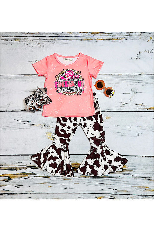 "PUCKER UP COWBOY" peach & cowhide 2pc short sleeve set