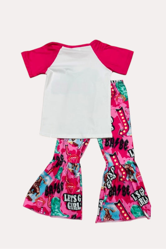 LC0014 Hot pink & white "HOWDY BABE" 2pc short sleeve girls set