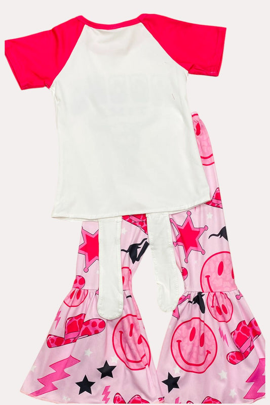 LC007 Pink smiley faces "RODEO TIME"top & western pant 2pc girls set