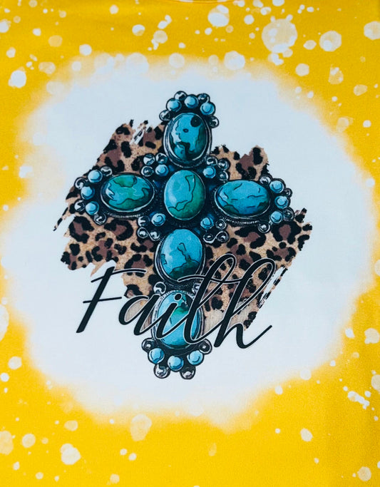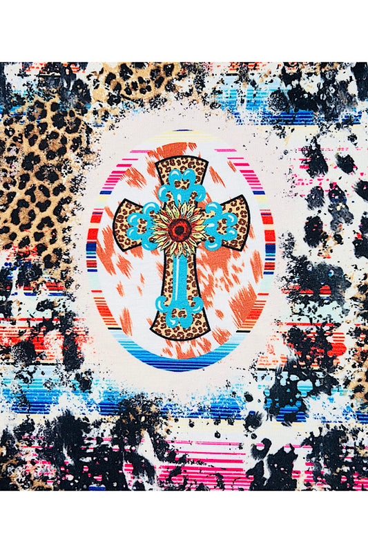 Leopard, cow, & serape print w/cross & sunflower short sleeve top