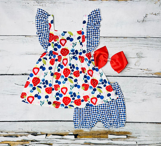 Strawberries & blueberries white, red, & blue 2pc set WY1231