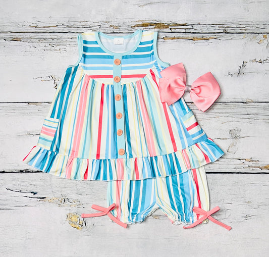 Multicolor stripped w/pockets & buttons 2pc set