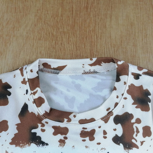 Wholesale Pink Suit Girls Short Sleeve Tie Dye Printing T-Shirt Flared Pants Children Kids Clothes