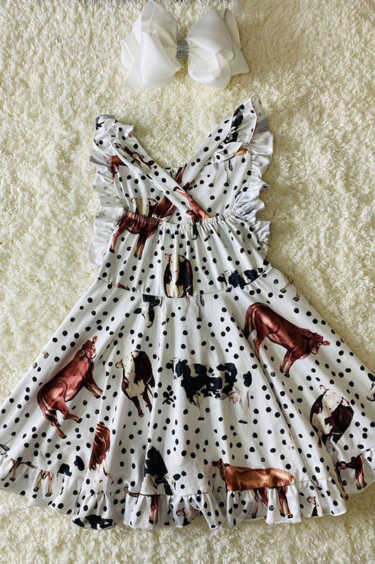 Cows & polka dots swirl w/crisscross back dress D2316