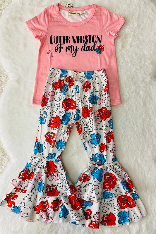 CUTER VERSION OF MY DAD top floral printed bell bottom 2pc girls sets X0333-11 A7S6