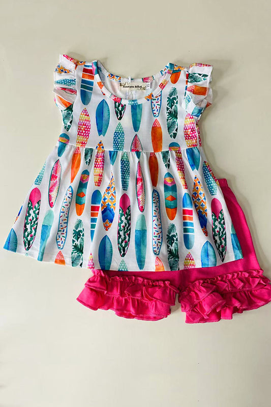 Multicolor surfboards ruffle 2pc set X0333-3