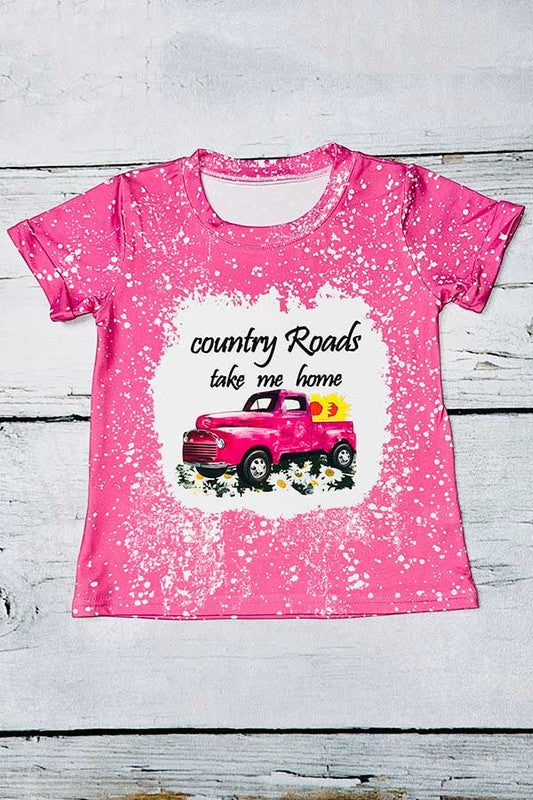Girls t-shrit w/"Country roads take me home" pink bleached short sleeve shirt D0923-06