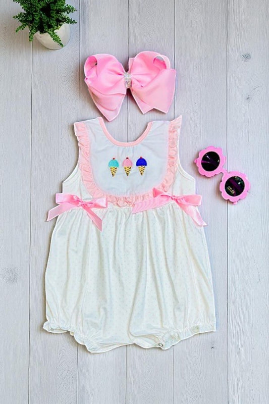 Wholesale Embroidered ice cream cones & polka dots baby romper D2543