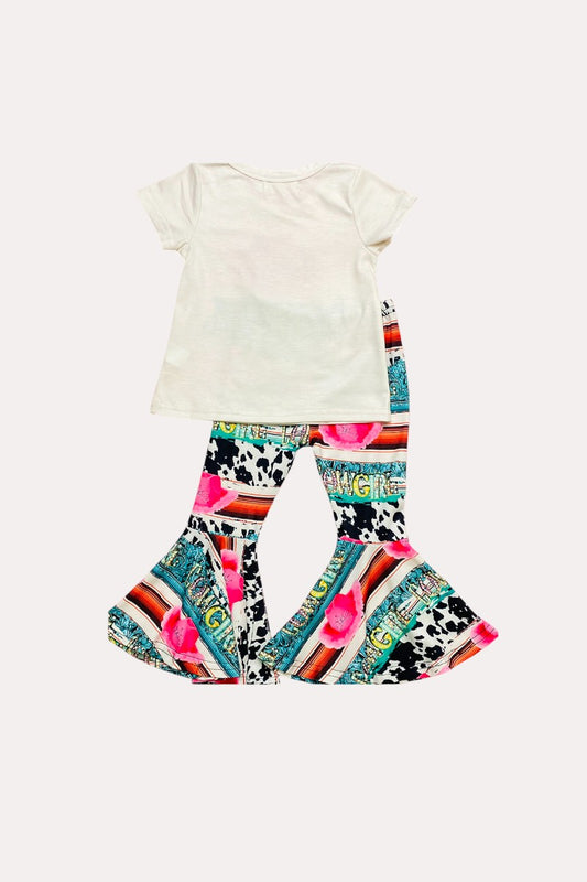 SaleXCH0777-38H "COWGIRL" serape & cow print 2pc girls set