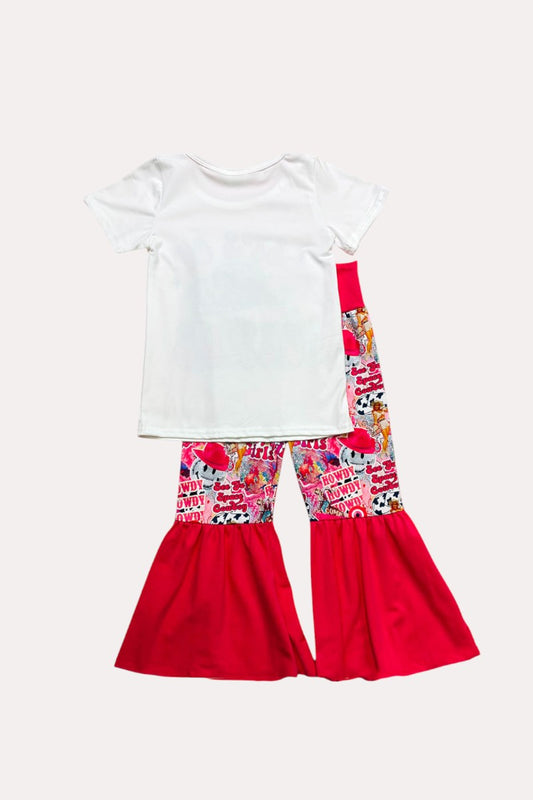 1137WY "LET'S GO GIRLS" white top hot pink bell bottom girls set