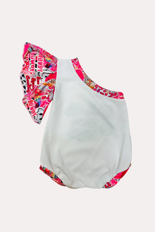 1149WY "LET'S GO GIRLS" disco ball one ruffle sleeve baby bubble romper