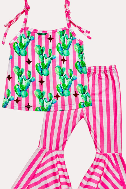 X0777-25 Pink & white stripped print w/cactus 2pc girls sets