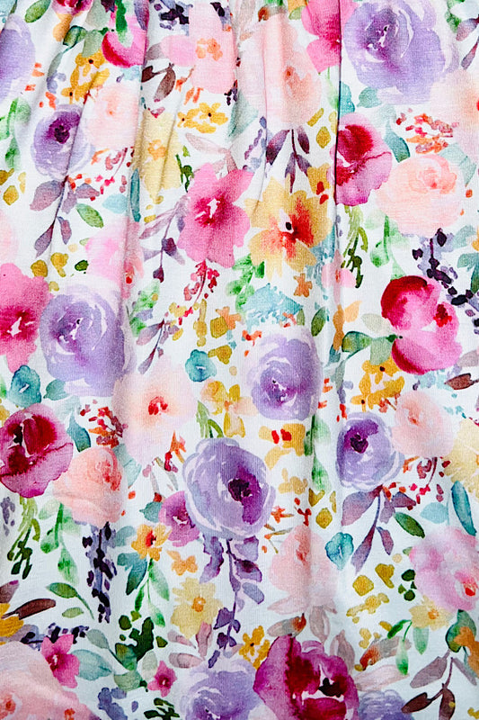 Pink & purple floral swirl short sleeve dress XCV0888-3H
