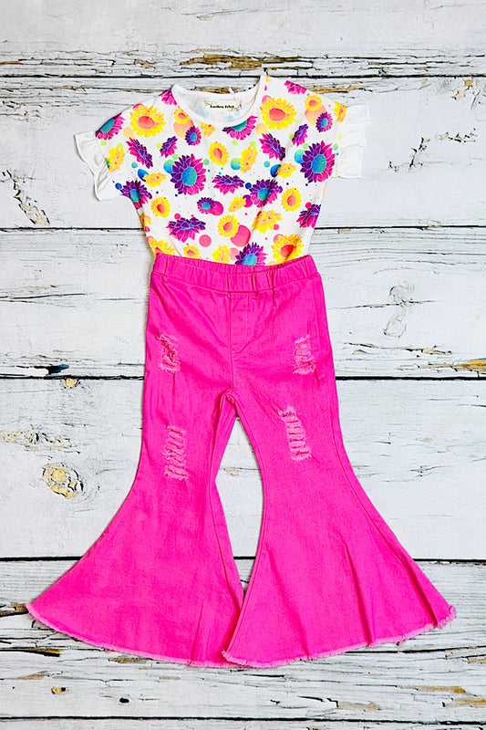 Sale"SODA" pompom top w/pink denim shorts 2pc set DLH2341