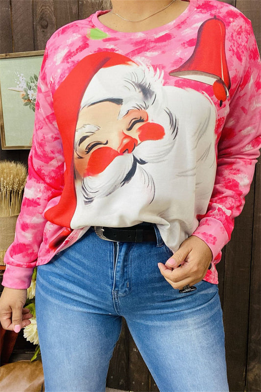 SaleDLH15340 Santa claus graphic printed long sleeve women tops(IS2)