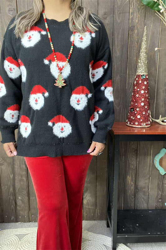 SaleSanta Claus for Christmas knitted black long sleeve women sweater MY15294